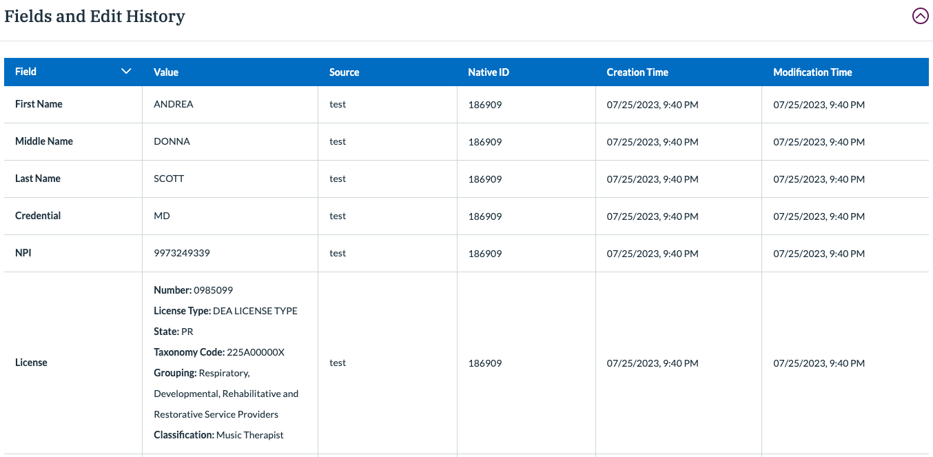 - License Types have been added to the License attribute cluster. Now, when license information is sent to Verato, the type field is included allowing for additional clarity about license origin. For example, Dr. Wilson has two licenses from the state of Oregon. One license is her state medical license and the other is her DEA license. This allows doctor Wilson to have two licenses and the type field helps differentiate them. This is present both in the API and in the UI.